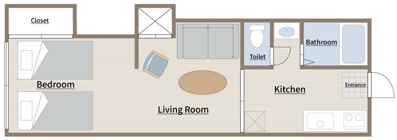 | 寝具 | シングルベッド ×2 ※連結してキングサイズとして利用可能(事前連絡必須) ソファベッド ×1 布団 ×2 |
